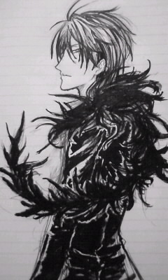 あと、リハビリも兼ねて、とりあえずイヴェールらしきヒトと黒薔薇らしきヒト落書きした。写メでサーセン